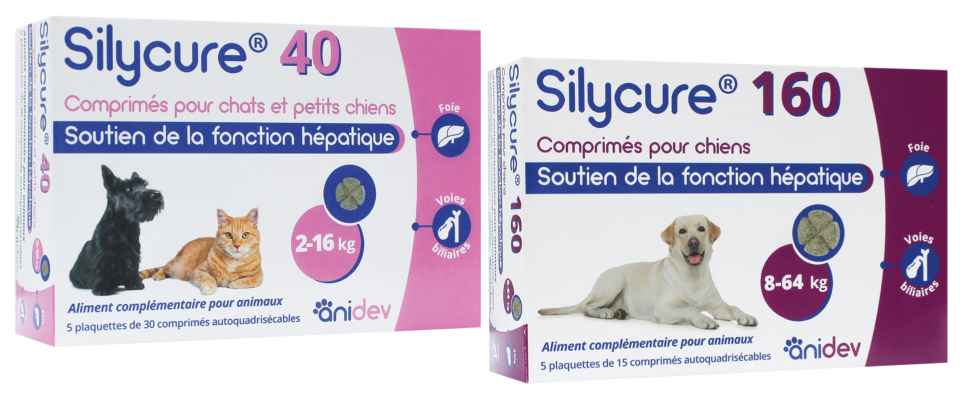 Silycure® permet de soutenir la fonction hépatique des chats et des chiens depuis plus de 10 ans grâce à un apport de silybine sous forme de phyto-complexe. Facile à administrer grâce à des comprimés appétents et auto-quadrisécables, Silycure® est une solution naturelle qui garantit un apport de silybine constant et biodisponible pour l’animal.